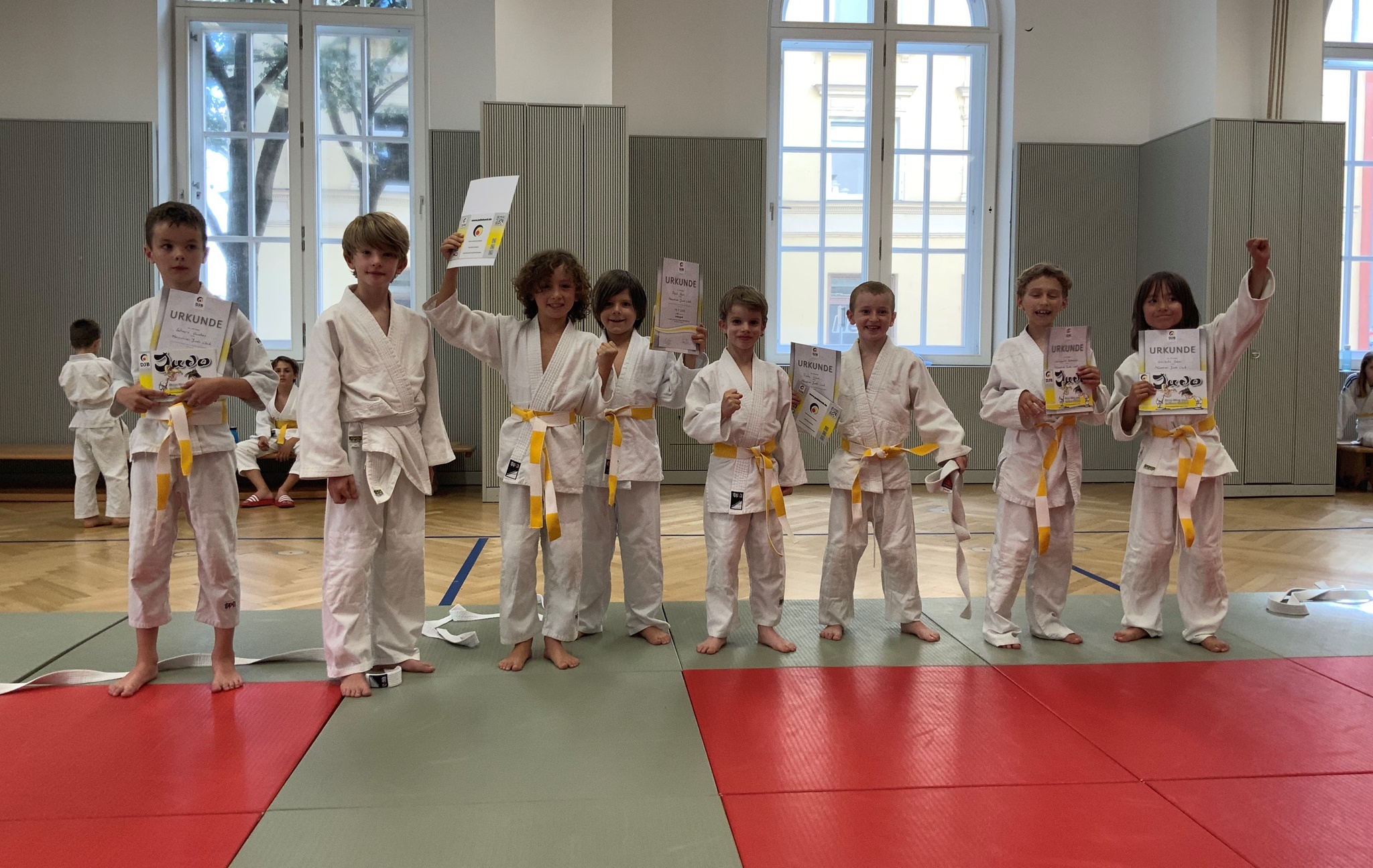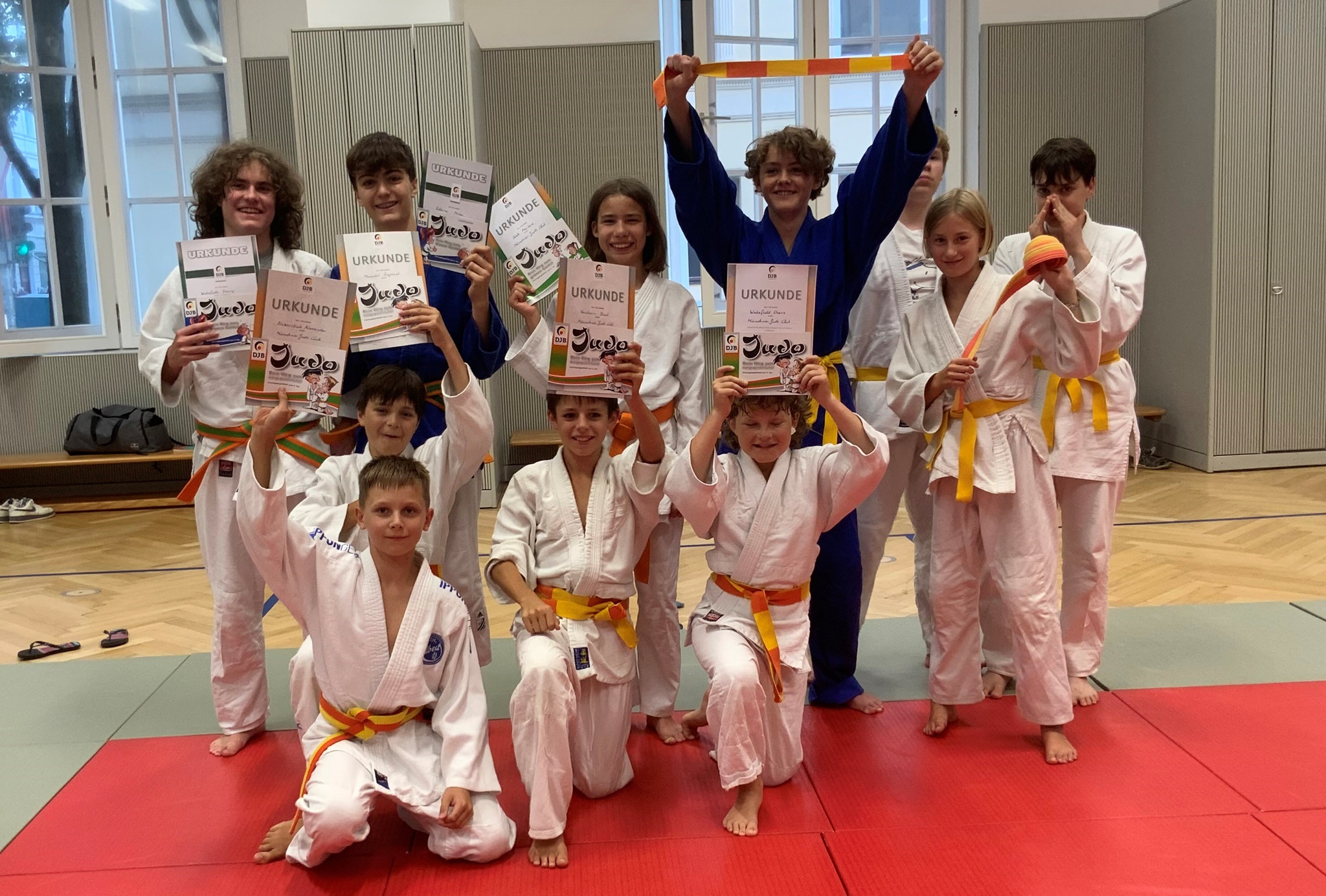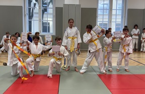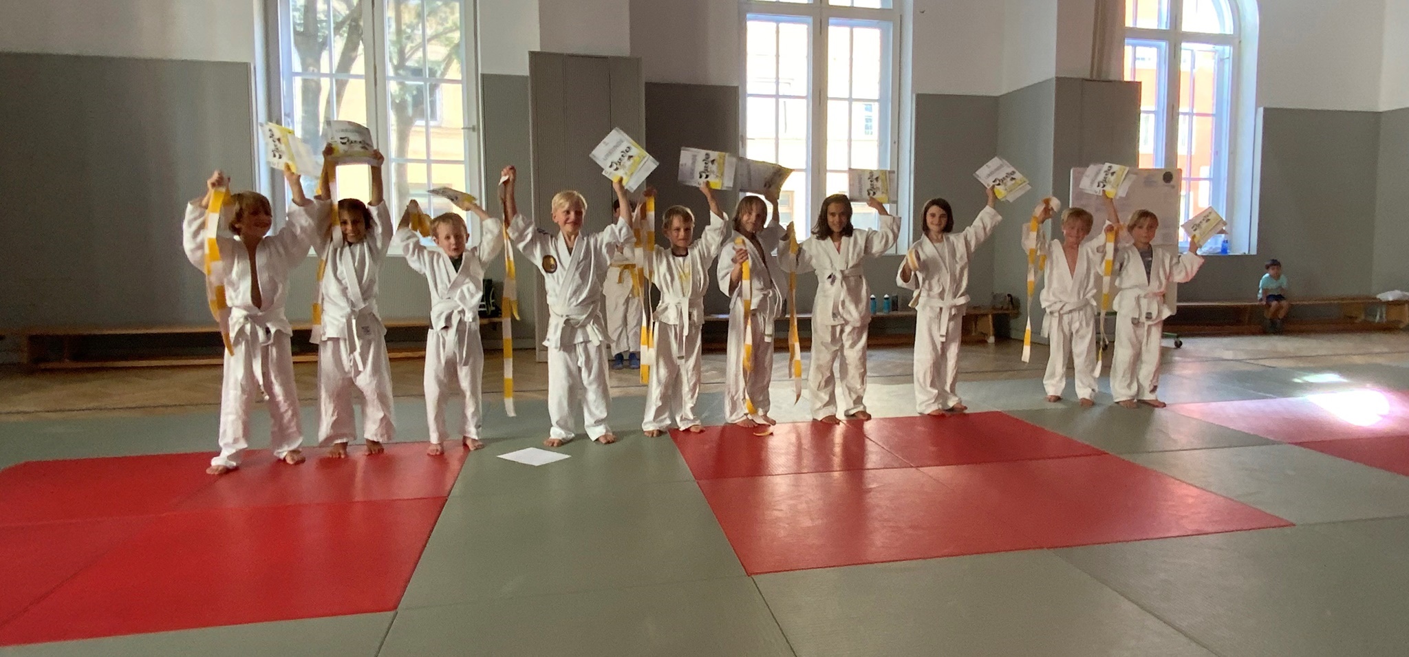 Vor den Sommerferien haben über 40 Kinder und Jugendliche ihre Gürtelprüfung für den nächst höheren Kyu-Grad bestanden und tragen nun mit Stolz ihre neuen Gürtel!
