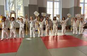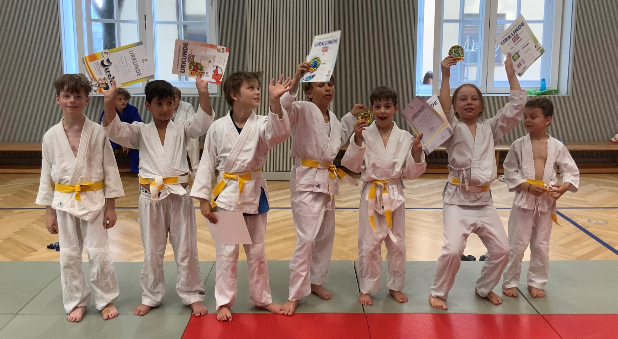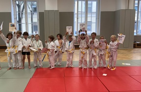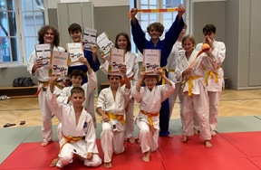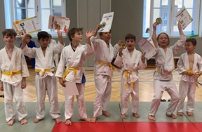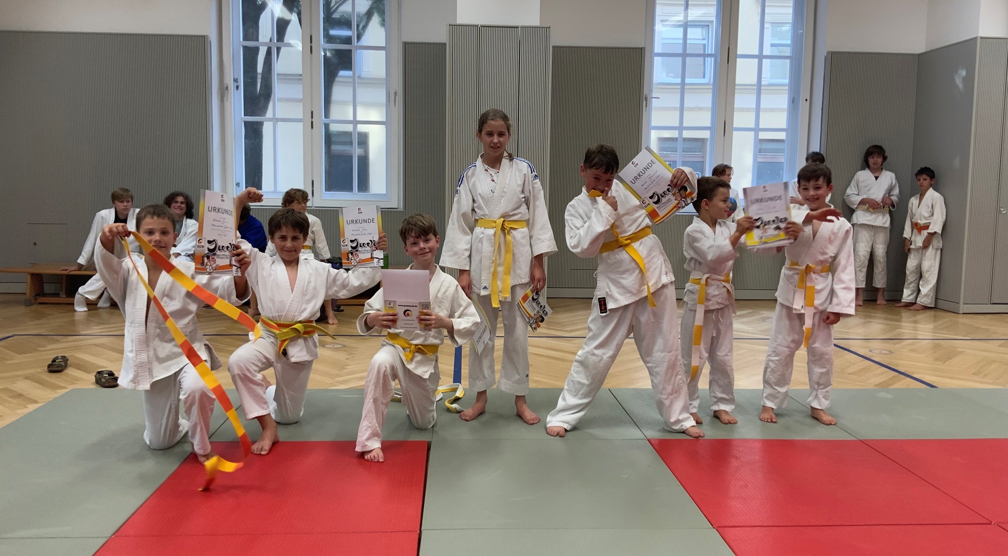 Vor den Sommerferien haben über 40 Kinder und Jugendliche ihre Gürtelprüfung für den nächst höheren Kyu-Grad bestanden und tragen nun mit Stolz ihre neuen Gürtel!