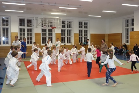 Wir trainieren in der unteren Turnhalle der Grundschule an der Klenzestr. 48