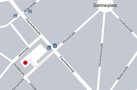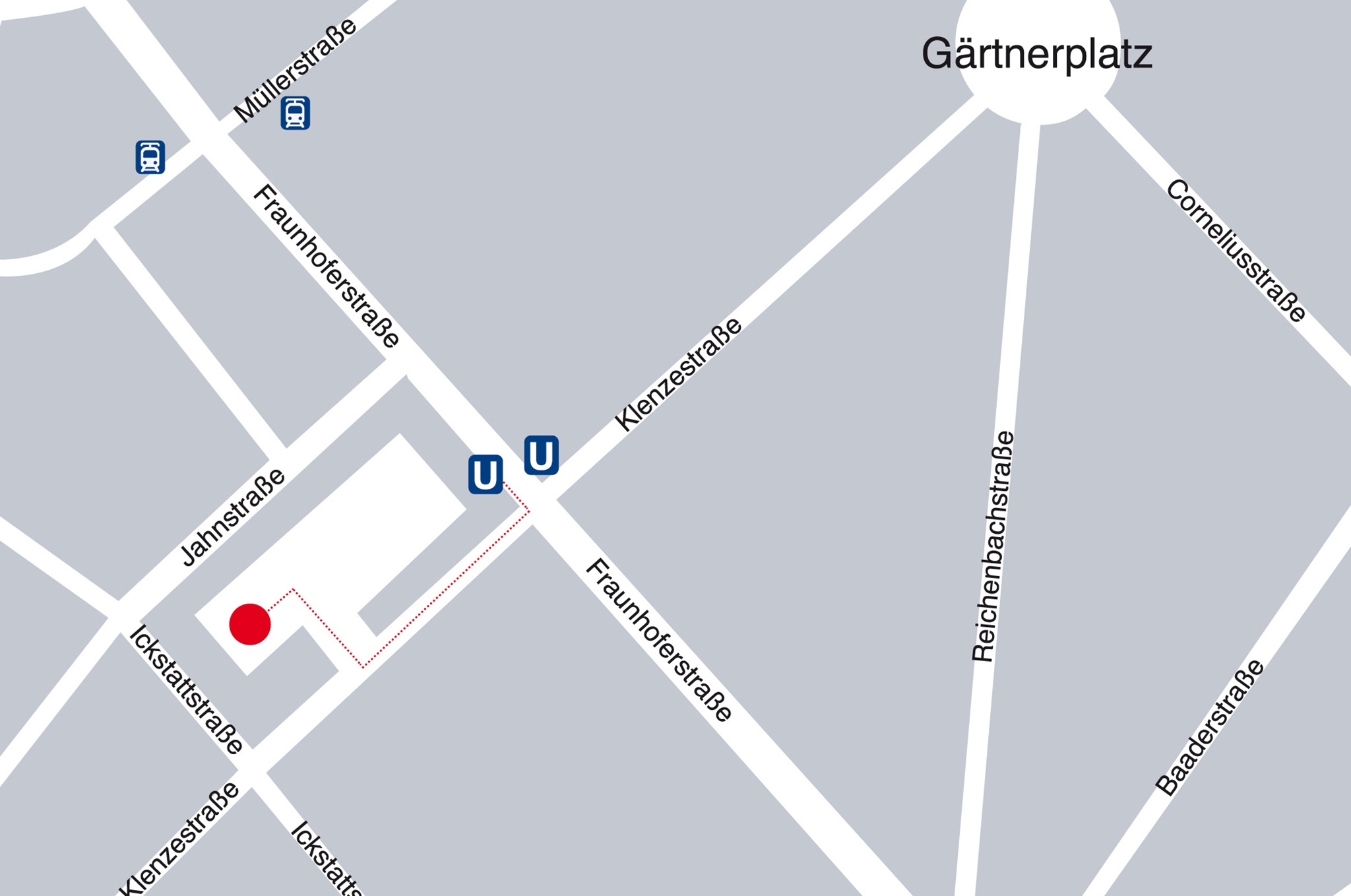U-Bahn 1/2, Haltestelle Fraunhoferstr. (Aussteigen: Klenzestr.)